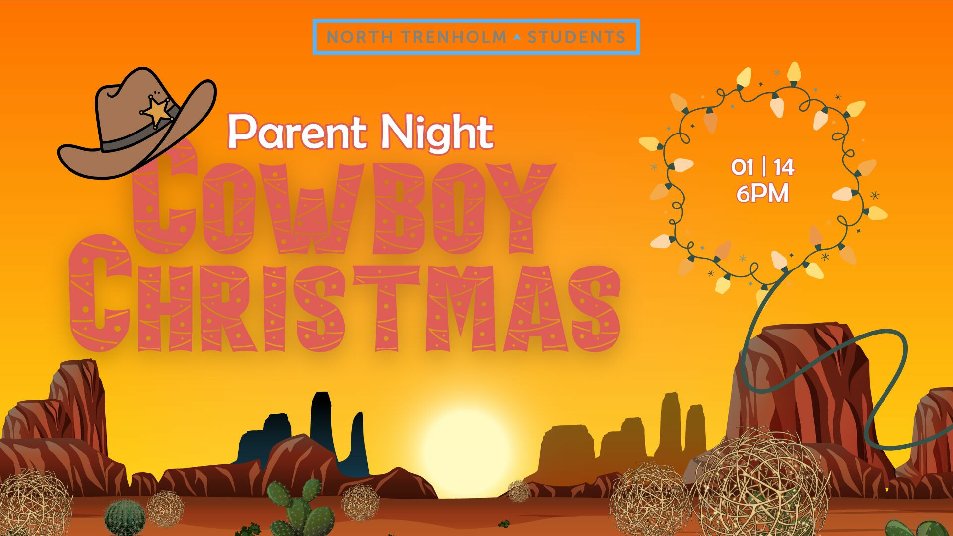 We will give important updates in student ministry, sing Christmas carols, have a short devotional and play some Cowboy Christmas games!